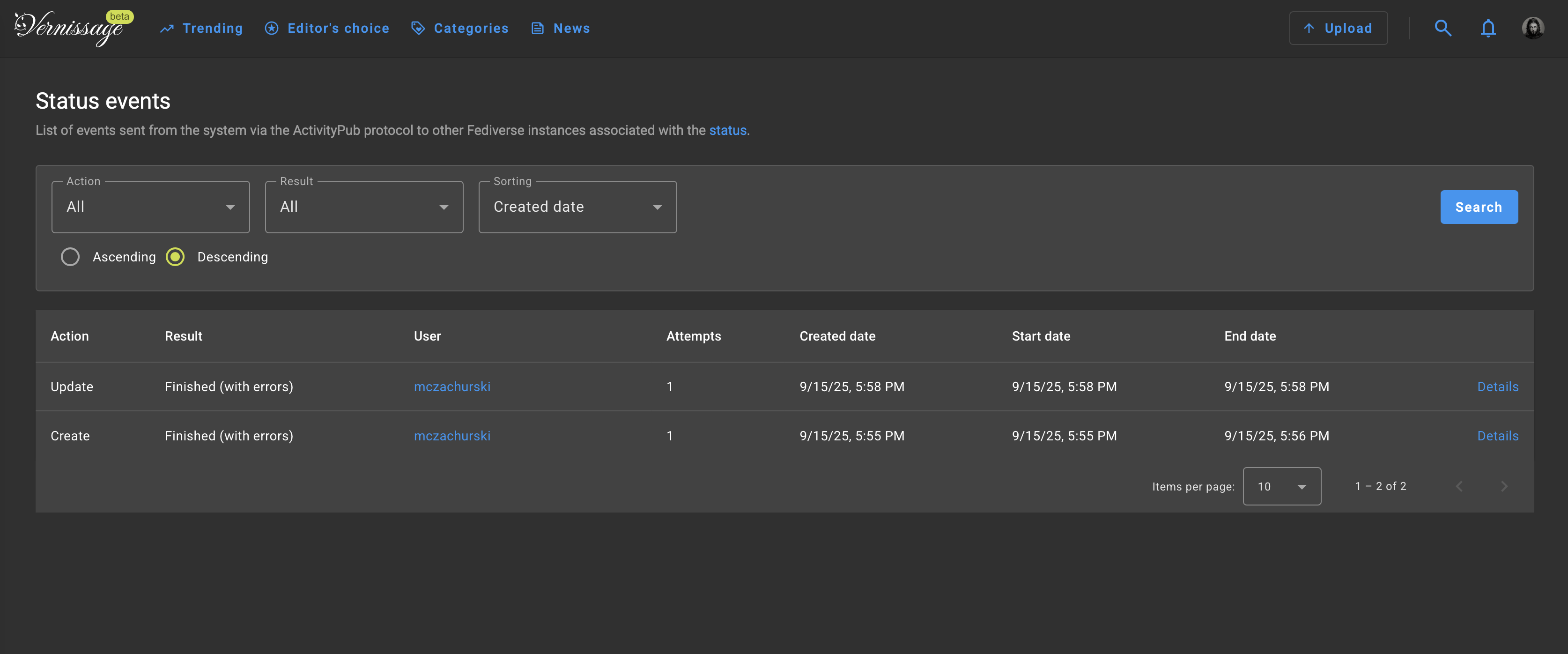 This update adds a new feature for authors and moderators: the ability to view ActivityPub events. Now you can easily check where a specific event, like creating, updating, or liking a post, was sent. If everything works smoothly, the official release will go live before the weekend, and we’ll move on to the next exciting items in the queue. 🚀