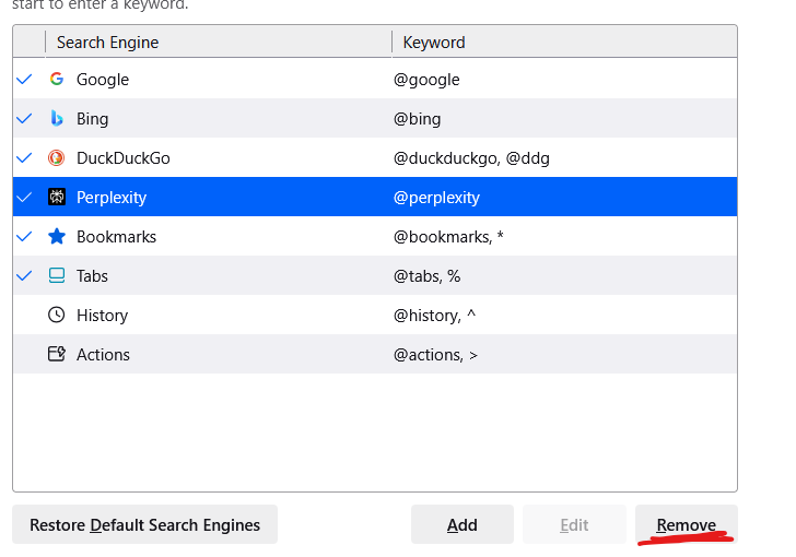 Firefox just updated and those shit eaters decided to add some ai slop search engine to the browser so make sure to go under your search settings and remove it like I'm about to.