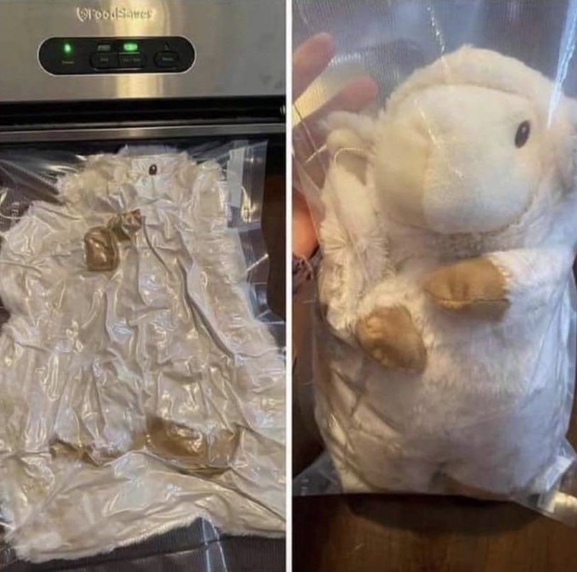Know what this is? It's a vacuum sealed plushy bunny. Imagine the nightmares your children will have by giving them this!