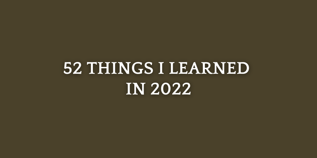 Kent Hendricks' list of 52 things he learned in 2022, including "Swiss cheese tastes better when it listens to hip hop" and "people who grow up in cities with grids are [...] more likely to lose at video games". (via @tomwhitwell) kenthendricks.com/52-things-i-…