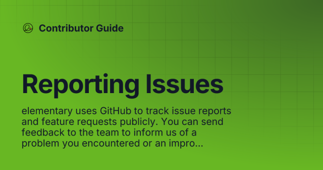 elementary uses GitHub to track issue reports and feature requests publicly. You can send feedback to the team to inform us of a problem you encountered or an improvement that you would like to see.docs.elementary.io