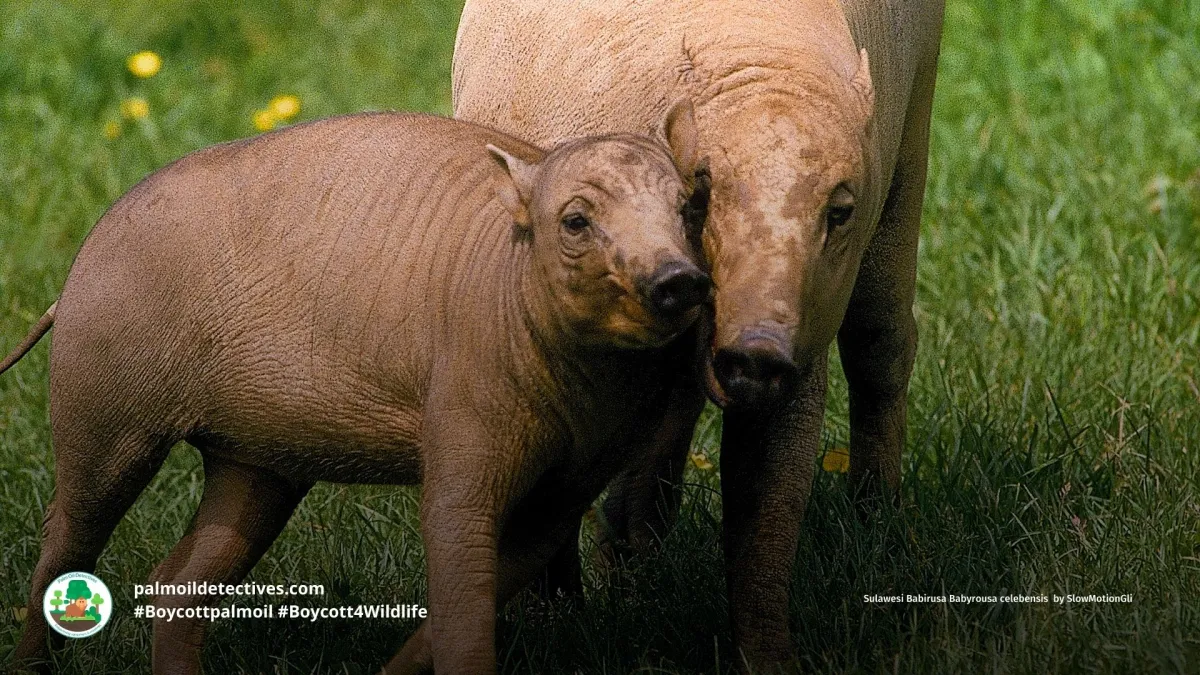 The Sulawesi Babirusa also known as the North Sulawesi Babirusa are hog-like animals are found on Sulawesi Island along with nearby islands Lembeh, Buton, and Muna in Indonesia. They have a mottled…Palm Oil Detectives