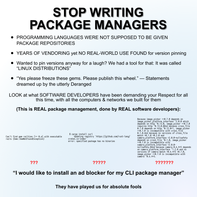 * Someone posts an extremely spicy implementation of a basic app on r/androiddev that essentially says, "All recommended best practices for Android dev are trash, just use Java and ditch all of Google's compat APIs": reddit.com/r/androiddev/commenโฆ