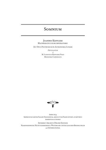 Joannis KeppleriMathematici olim imperatoriiSomnium,Seu Opus Posthumum de Astronomia Lunari.Divulgatum, à M. Ludovico Kepplero Filio, Medicinæ...Internet Archive