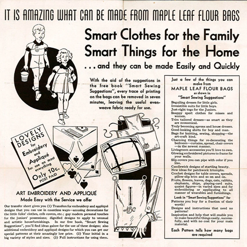 Without further ado, our first sewing history moment will be focusing on an innovative and resourceful way in which 20th-century North American women outfitted their families- sewing garments out of flour and feed sacks...