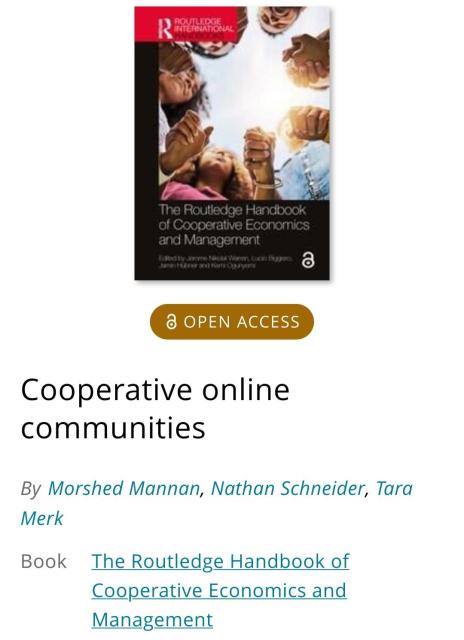 Just published! A book chapter with Morshed Mannan and Tara Merk on "Cooperative Online Communities," open acess for all: taylorfrancis.com/chapters/oa-…