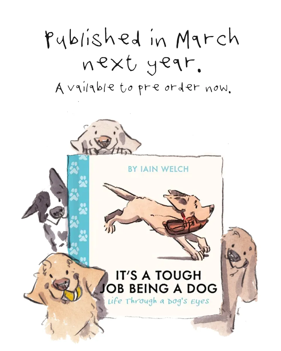 So, I wrote a book. It’s about how tough of a job it can be, being a dog. You can find out about it hereIain Welch Art and Design