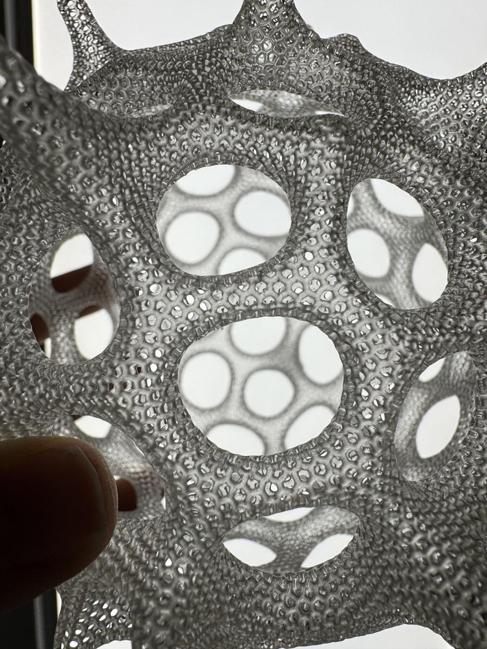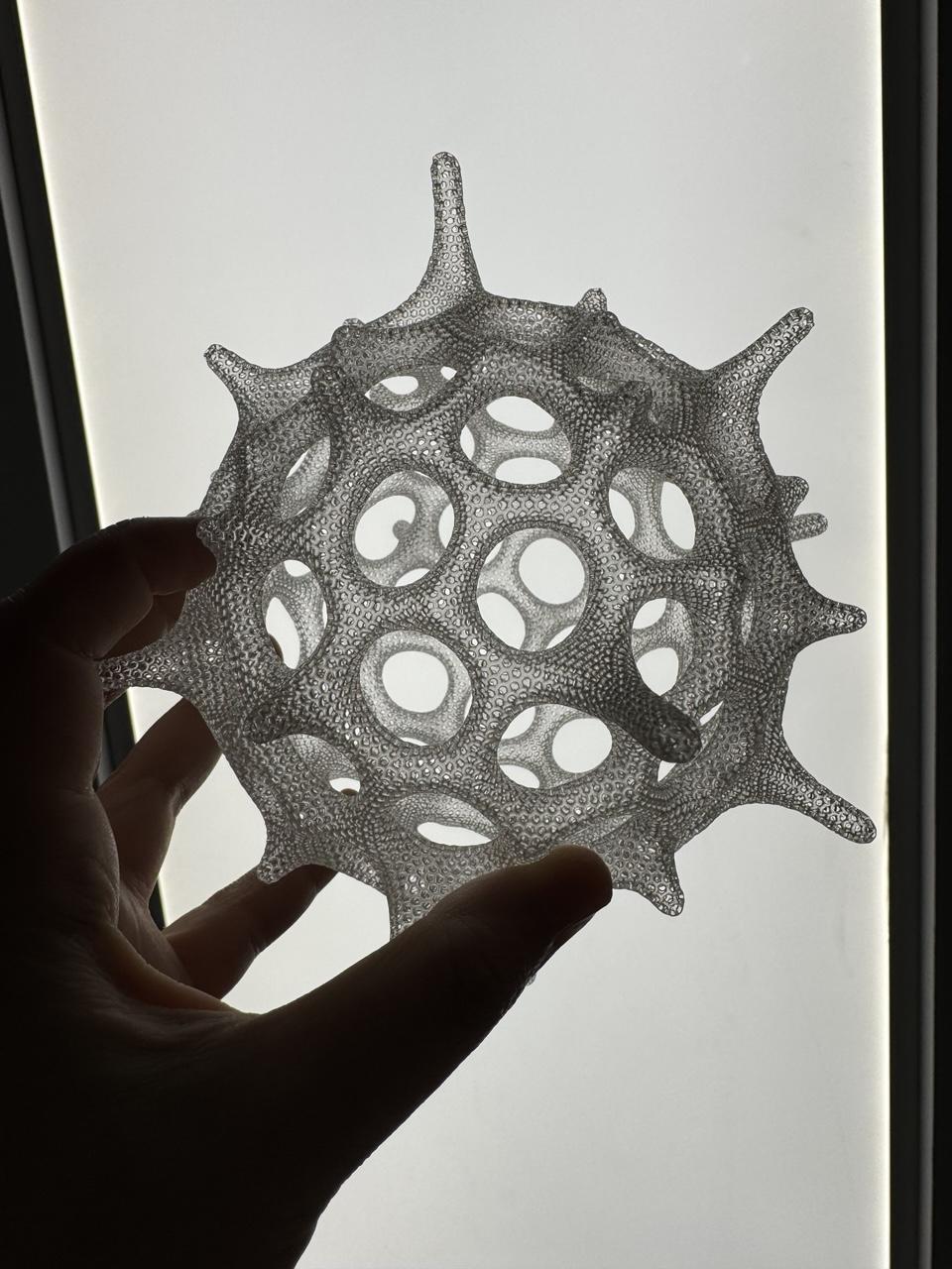 I’m kind of amazed we can print this. We took one of our radiolarian models and made it into a cellular mesh. Kind of like a fractal radiolarian