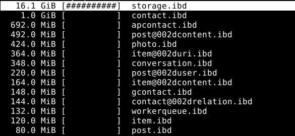 So I run mysqloptimize and got some minor gains; about 2G reduction.