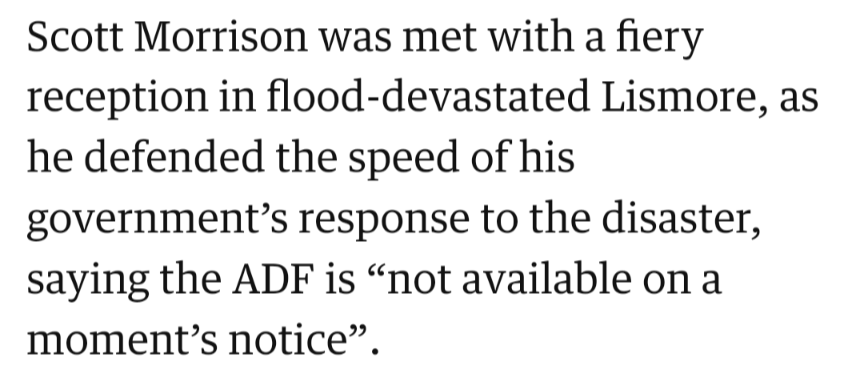 Hopefully it might damage the LNP support in the ADF. Since at least in my neck of the woods, Dutton gets a lot of support from the Army.
