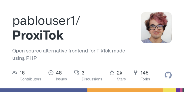 Finally, I can just click-to-open those TikTok links some of my friends ocassionally send me... Just like there's Nitter for Twitter, someone developed an alternative front-end for TikTok, called ProxyTok. github.com/pablouser1/ProxiTok 👏🏼