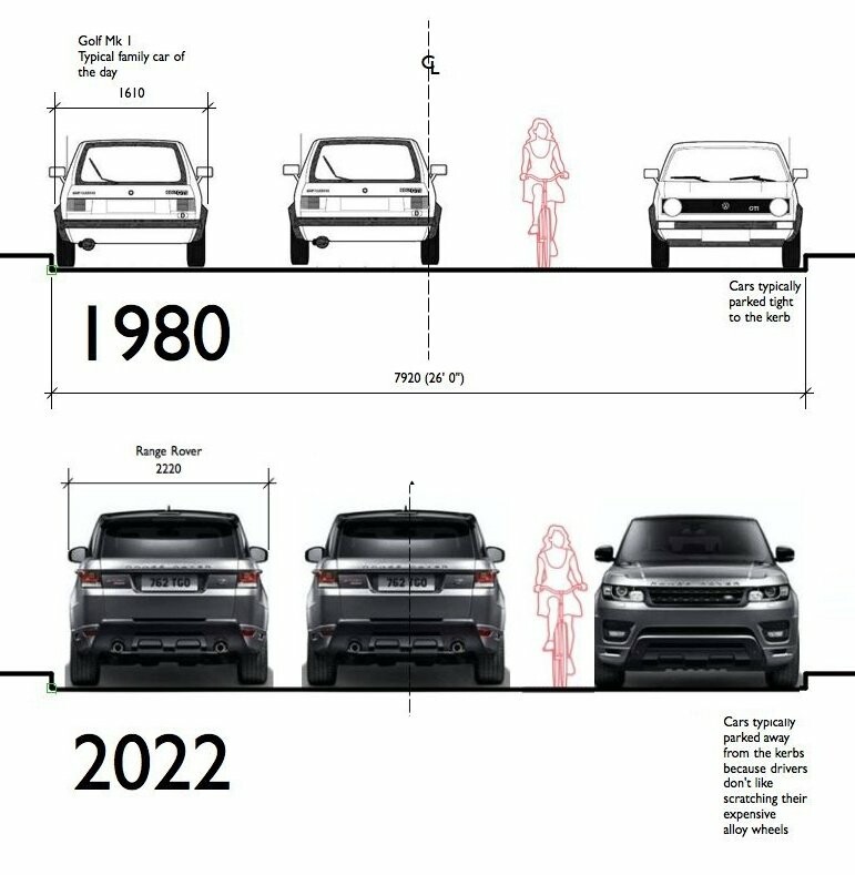 My feeling, having driven small hatchbacks on narrow roads, is that even those have grown wider with time: every time I changed car it was a few cm larger, even when I remained on a more recent version of the same car.