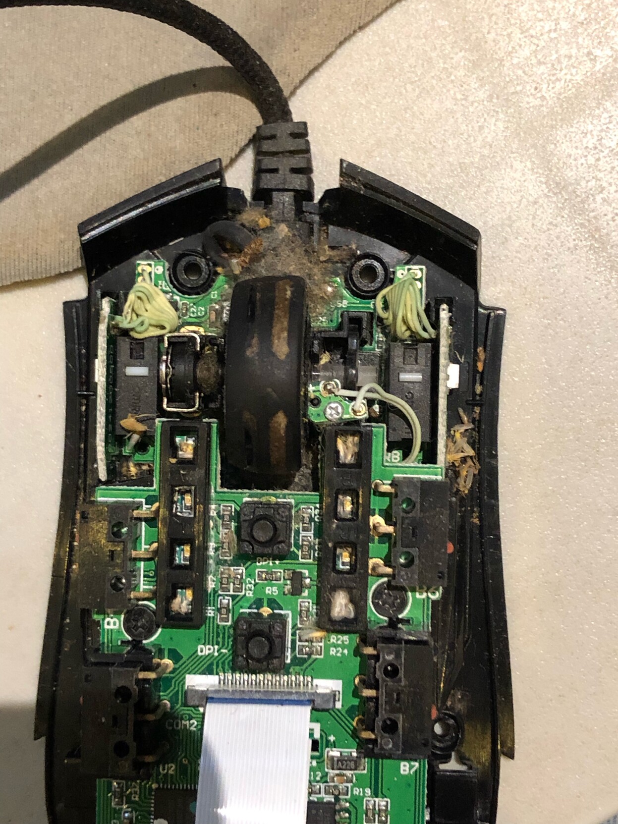 Well that job was a bit gross. I’d noticed my mouse was sometimes mis-clicking, so i pulled it apart to see if the switches were interchangeable. They don’t seem to be, but the mouse was full of dead bugs, fluff and gunk. (Whoever thought lights on a mouse was a good idea clearly never had to open one after a couple of years of use)
