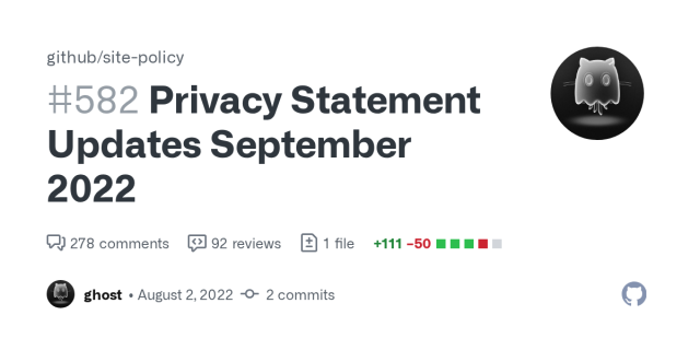 Privacy Statement Updates September 2022 by olholder · Pull Request #582 · github/site-policy
