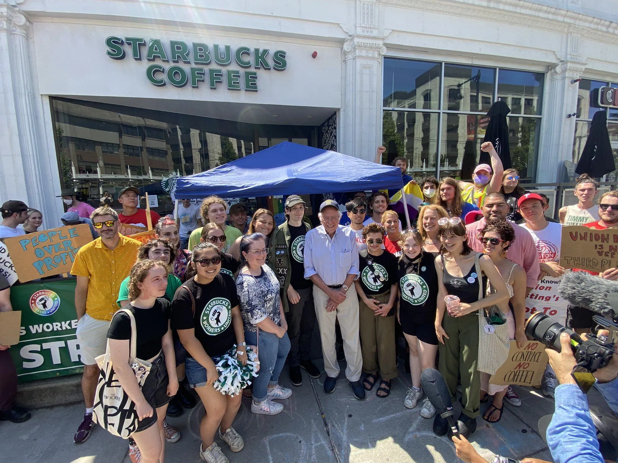 Sanders Joins Striking Starbucks Workers on the Picket Line in Boston