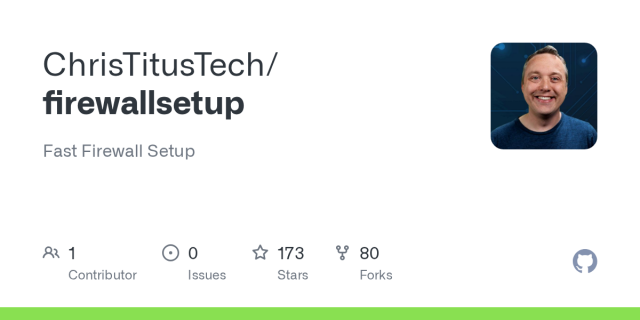 Fast Firewall Setup. Contribute to ChrisTitusTech/firewallsetup development by creating an account on GitHub.GitHub