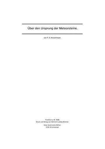 Über den Ursprung der Meteorsteine. : Paul August Kesselmeyer : Free Download, Borrow, and Streaming : Internet Archive