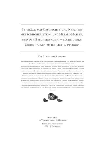 Beiträge zur Geschichte und Kenntnis meteorischer Stein- und Metall-Massen, und der Erscheinungen, welche deren Niederfallen zu begleiten pflegen.