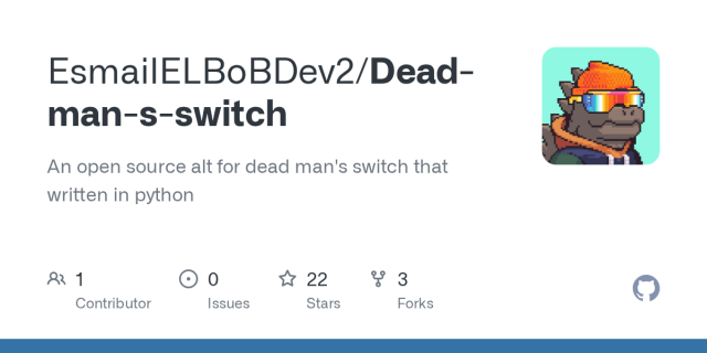 An open source alt for dead man's switch that written in python - GitHub - EsmailELBoBDev2/Dead-man-s-switch: An open source alt for dead man's switch that written in pythonGitHub
