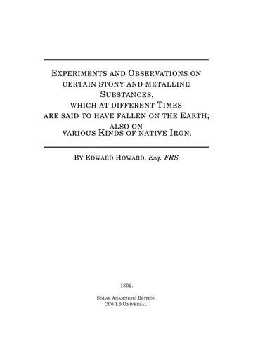 Experiments and Observations on certain stony and metalline Substances, which at different Times are said to have fallen on the Earth; also on various Kinds of native Iron.