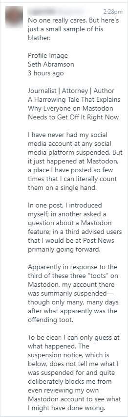 Rather than ask friends to ask @Gargron or his admin, he just goes off in public. It was probably a mistake, just as mine was. He blocks all his many critics. Heaven forbid someone should block him back. Post .news is probably rewarding him for this caterwauling.