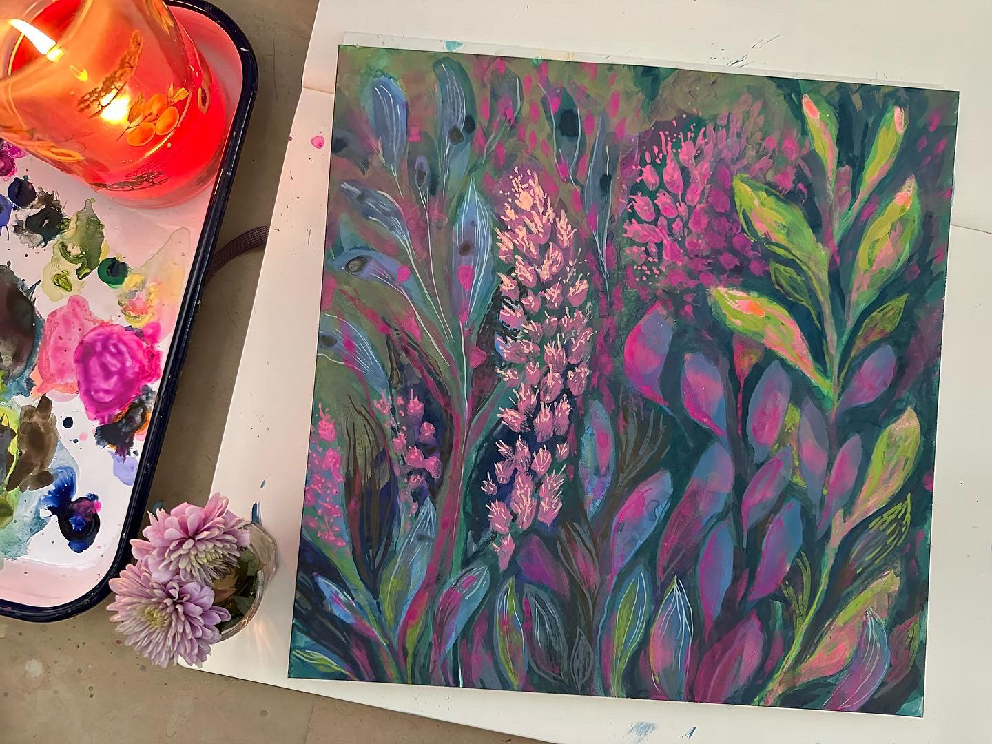 i’m Mellemony, and i create vibrant botanical art in a cozy mini-art-studio of a Twitch stream. you’re invited every wednesday & friday at 10am est (3pm bst) to come get cozy & creative.. or crash and listen away.