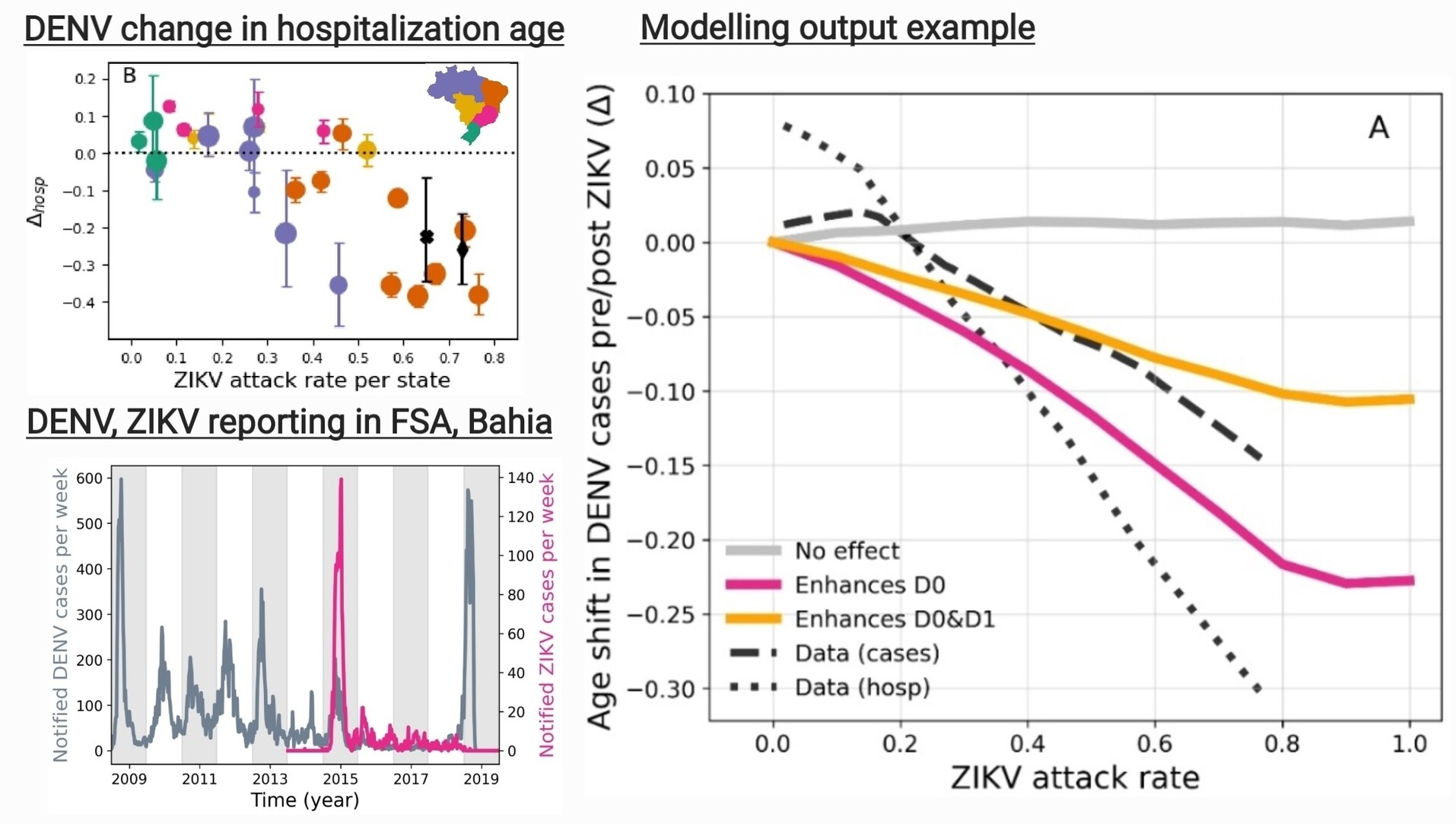 During the ZIKV public health crisis (2015-2018) Brazil reported low circulation of DENV. In 2018 DENV resurged with large outbreaks. DENV incidence after 2018 reveals a decrease in mean age of infection in regions most exposed to ZIKV. Using modelling we show that a combination of a short-term protection period to DENV followed by DENV disease enhancement in those exposed to ZIKV can reconcile the observed post-ZIKV DENV epidemiology.