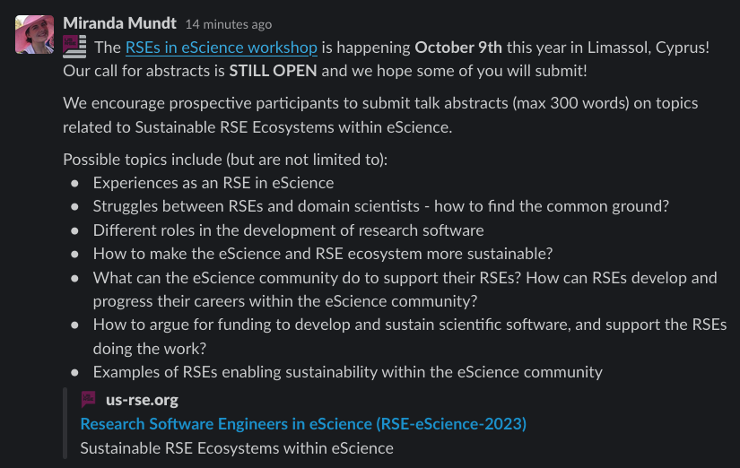 The RSEs in eScience workshop is happening October 9th this year in Limassol, Cyprus!