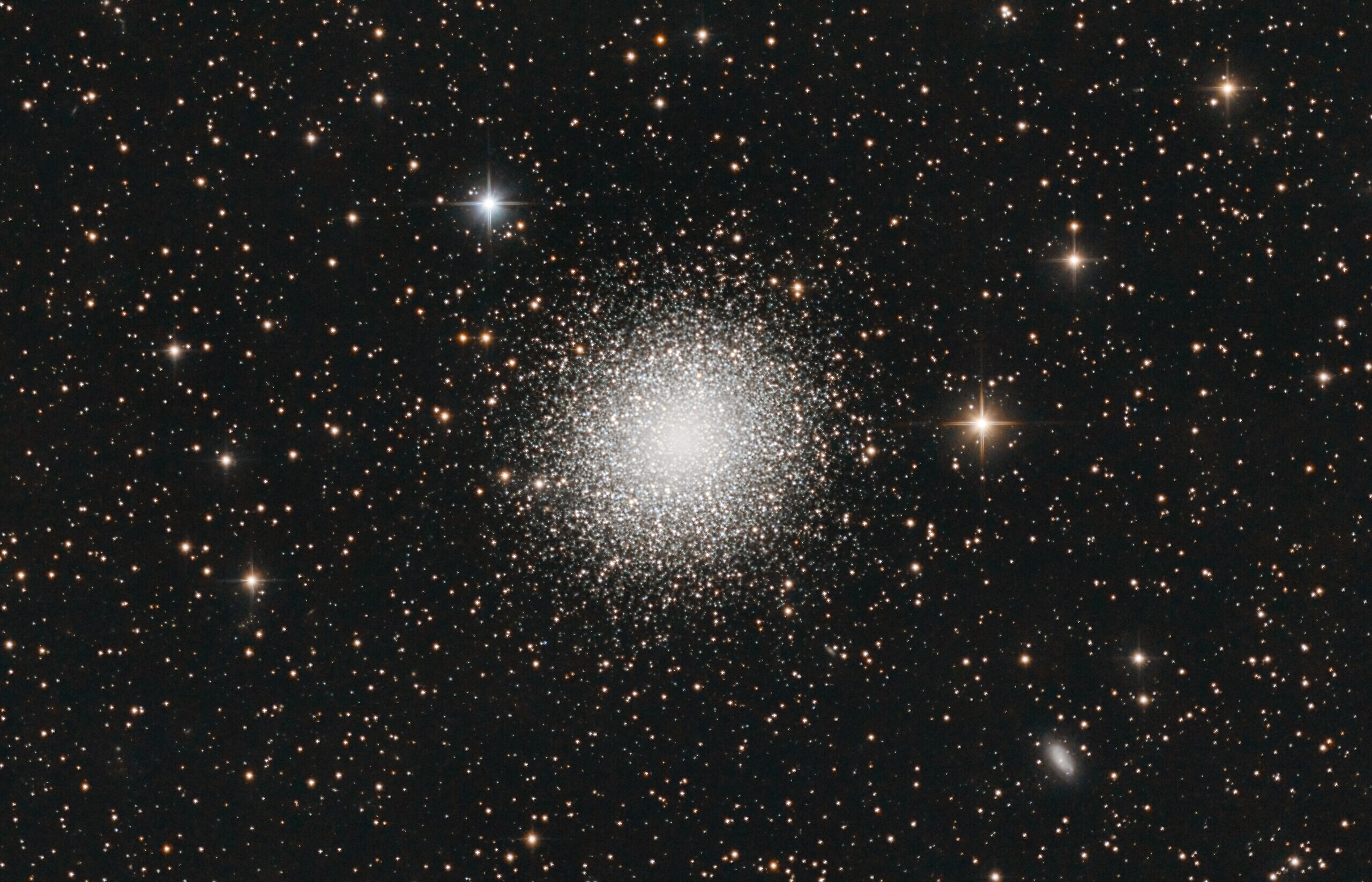"A sequence of images showing comet 67P/Churyumov–Gerasimenko moving against a background star field in the constellation Ophiuchus between March 27 and May 4, 2014." M107 in top left.