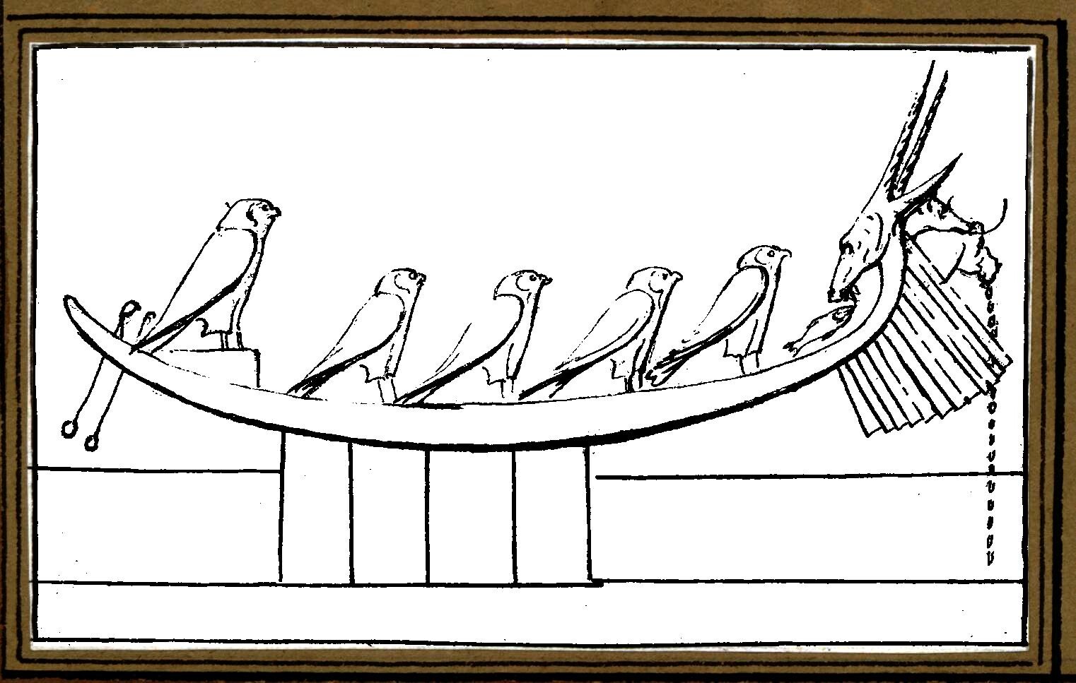 The boat of Sokar flanked by jackals (3rd century CE).
