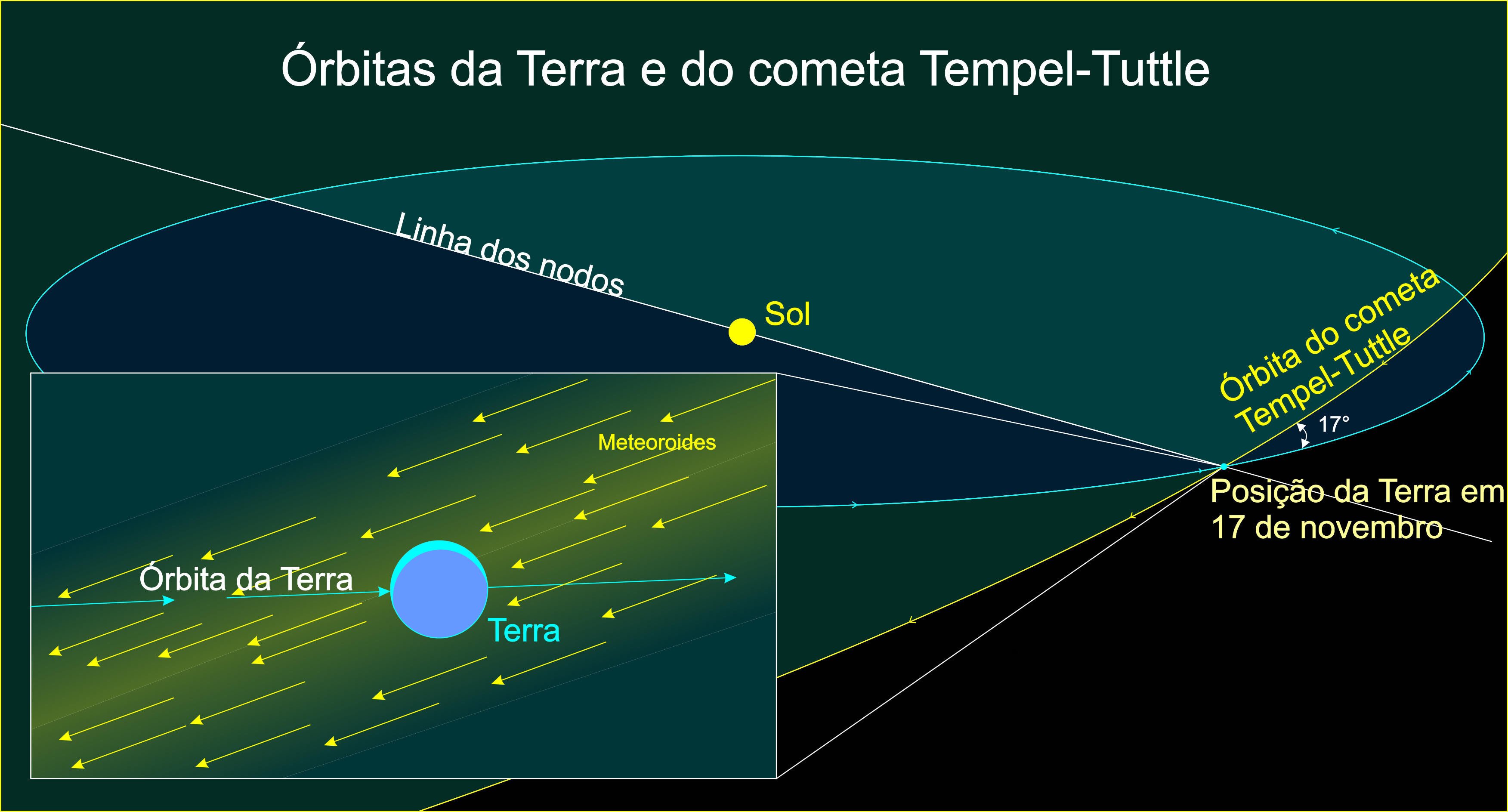 Diagram representing the orbit of Comet Temple-Tuttle that crosses with the Earth's orbit. Origin of the Leonids (Nov. 17).