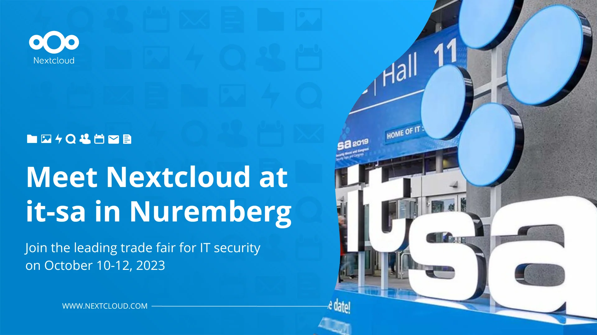 Say hello to the Nextcloud team at it-sa Expo&Congress in October, Europe's largest trade fair for IT security!