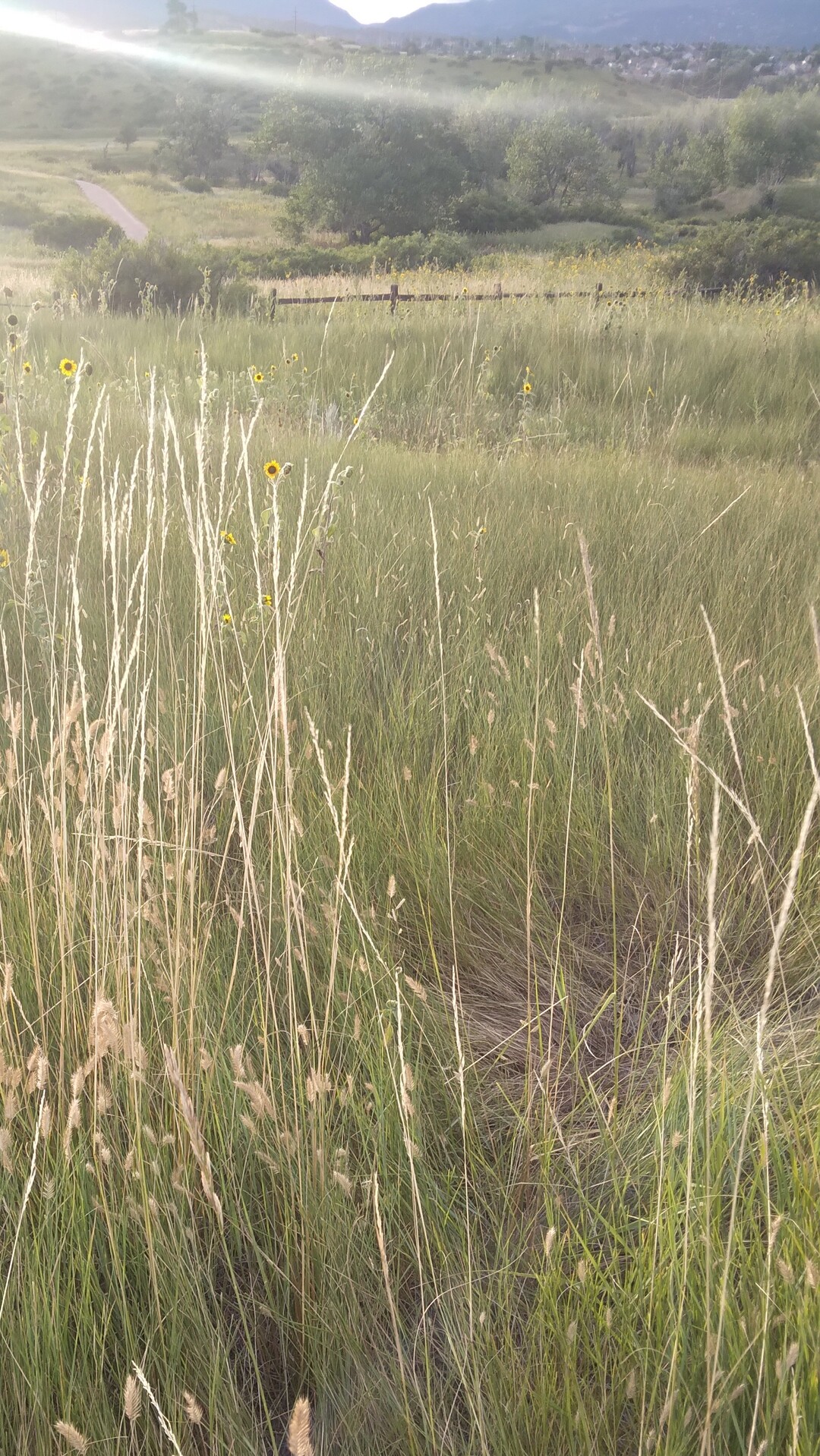 Any other year, heading into late August this field would be all tans and browns, but we've had so much rain it's still green, or what passes for green in this semi-arid zone. #frontrange #rockymountains