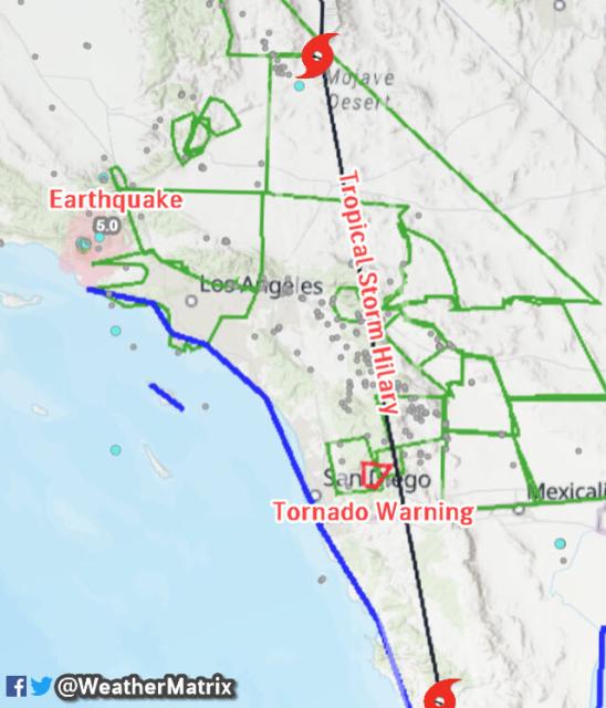 OK I got all 3 on a map: Tornado Warning, Earthquake, Tropical Storm, all in Southern Cali. If the Sharknado comes, somebody text me. #cawx