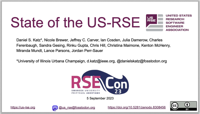 My slides on @us_rse from this morning at #RSECon23 are available as doi.org/10.5281/zenodo.8308456