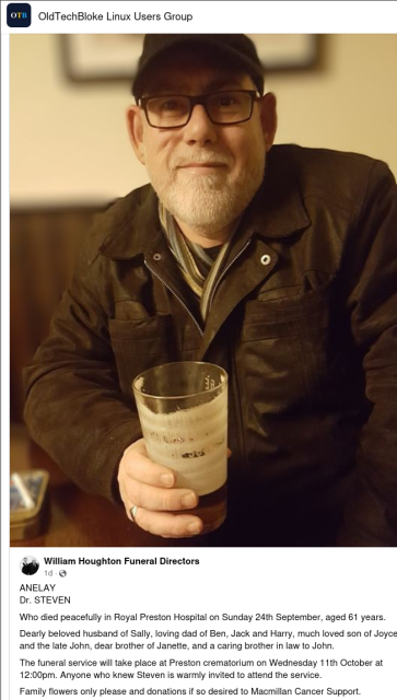 I never got a chance to speak with the man but it sounds like a lot of people really respected Steve better known online as Old Tech Bloke and the content he released to the world about Slackware #Linux, RIP