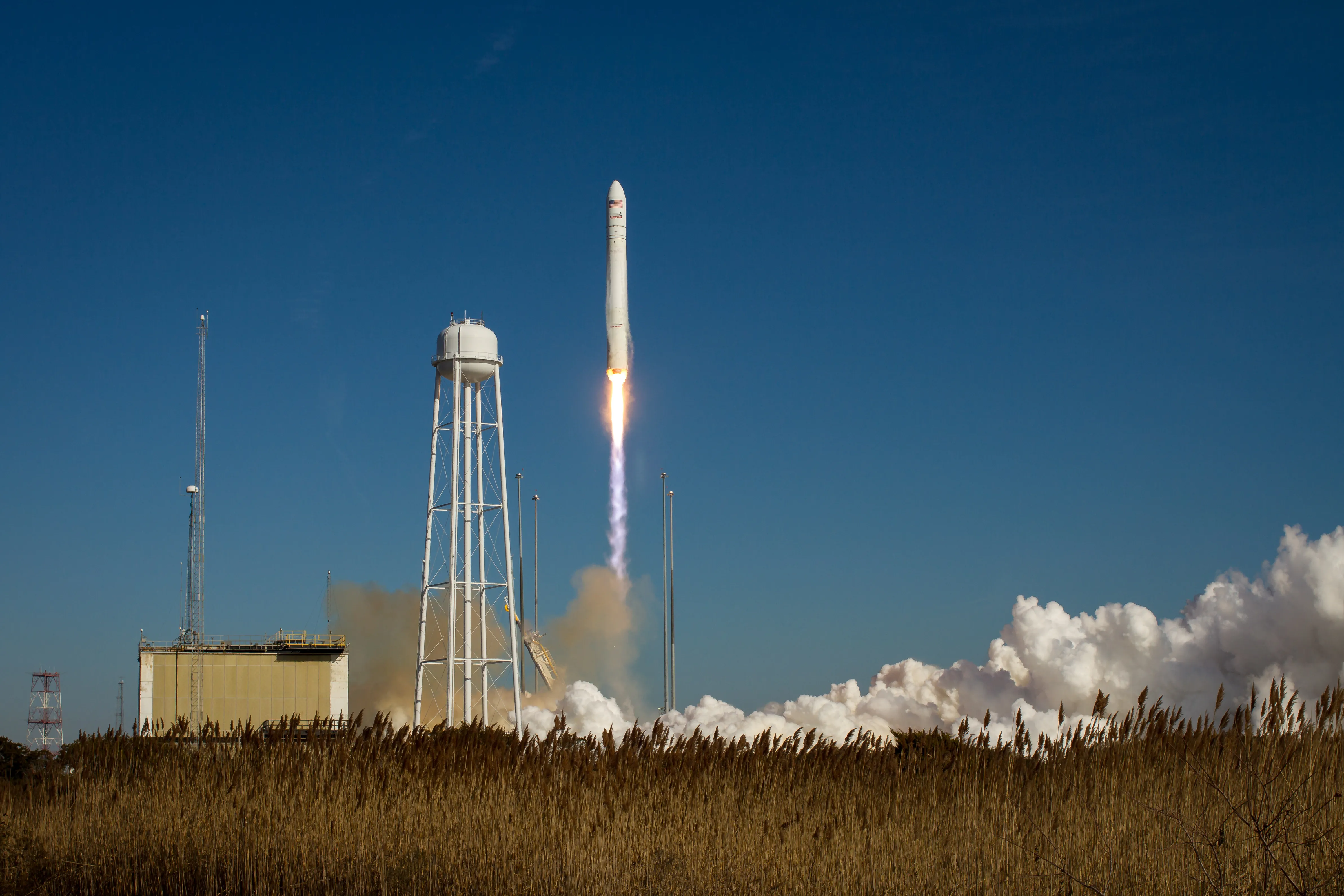 An Orbital Sciences Corporation (now Northrop Grumman) Antares rocket carrying the Cygnus spacecraft launches from NASA's Wallops Flight Facility in VirginiaNASA