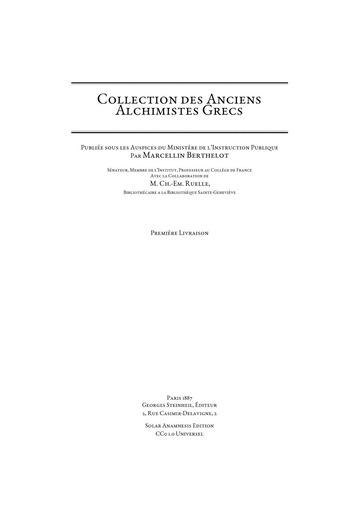 Collection des Anciens Alchimistes Grecs โ Premiรจre Livraison : Marcellin Berthelot : Free Download, Borrow, and Streaming : Internet Archive