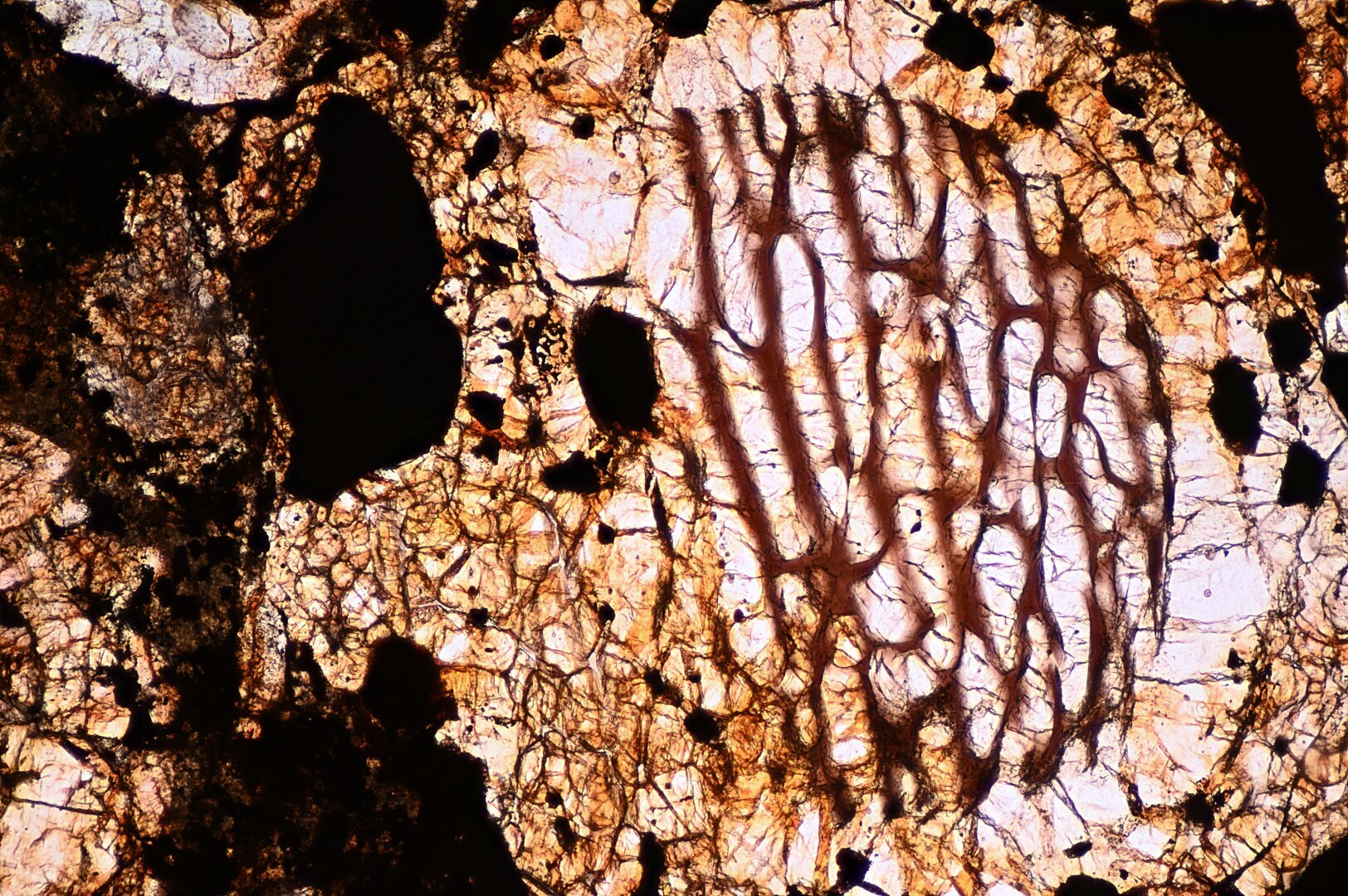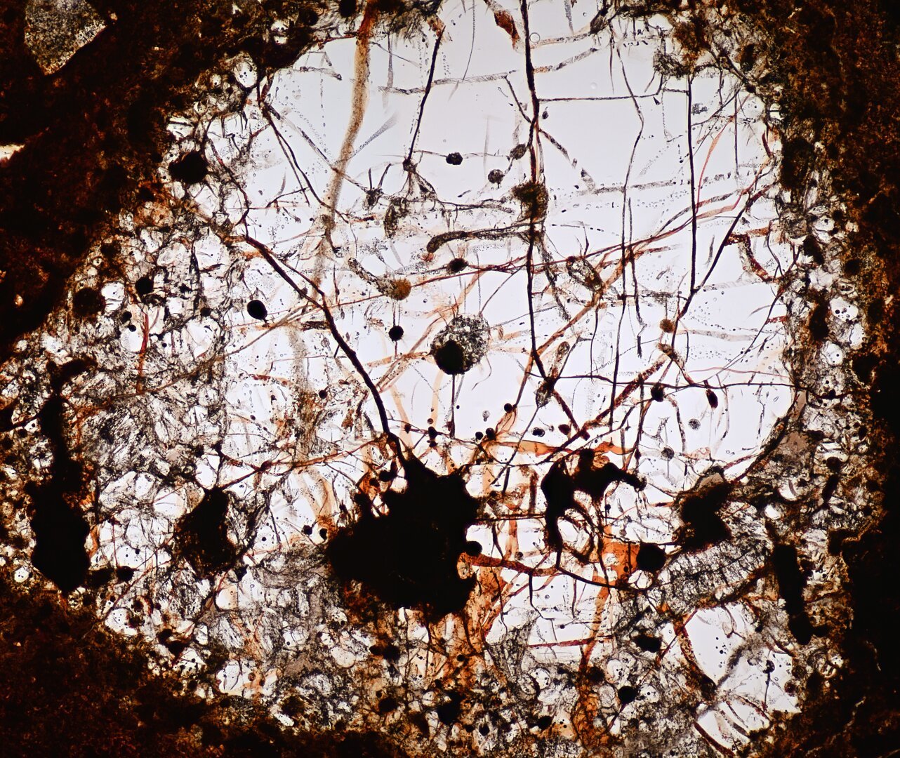 Northwest Africa (NWA) 8276 Meteorite Thin Section microphotograph.