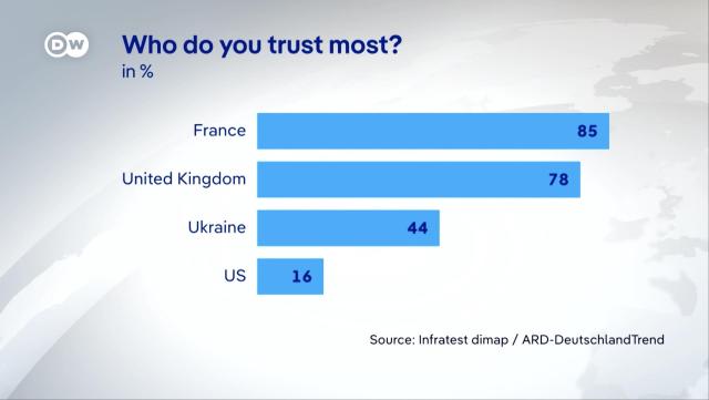 In Germany, where 85 percent of the population say they trust the French, only 16 percent now say they trust the US.