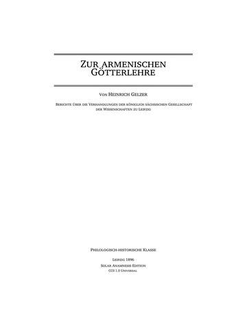 Zur armenischen Götterlehre.Von Heinrich Gelzer.Berichte über die Verhandlungen der königlich sächsischen Gesellschaft der Wissenschaften zu...Internet Archive