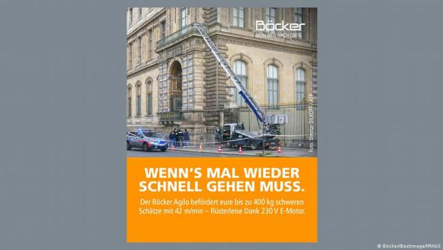 A German firm has launched a humorous advertising campaign after it turned out that one of its freight lifts was used in the Louvre jewel robbery earlier this week.dw.com