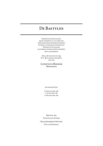 De Baetyliis : Franz Ludwig Bösigk : Free Download, Borrow, and Streaming : Internet Archive