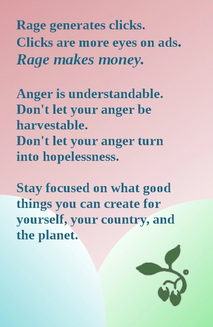 This kind of cynicism doesn't solve anything, and never can. It's corrosive and infectious, and promotes an atmosphere of despair. There's nothing positive about this. It just tells us, "There's no hope; give up." Where is the hopeful contrast implied in the leading text?