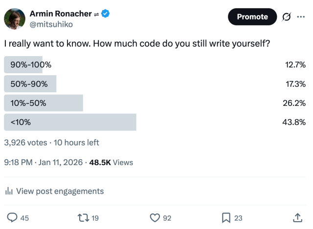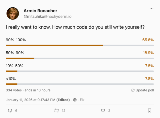 @Gargron @pfmoore @ibboard @dtanzer it’s not at all uncommon these days. There are basically two cohorts now, those who create by coding, and those who create by orchestrating systems that output code. If it helps, for them, it’s a bit like having interpreted languages where 99% of users have no idea what the actual assembly code looks like. Paying for that abstraction provides value to these users.