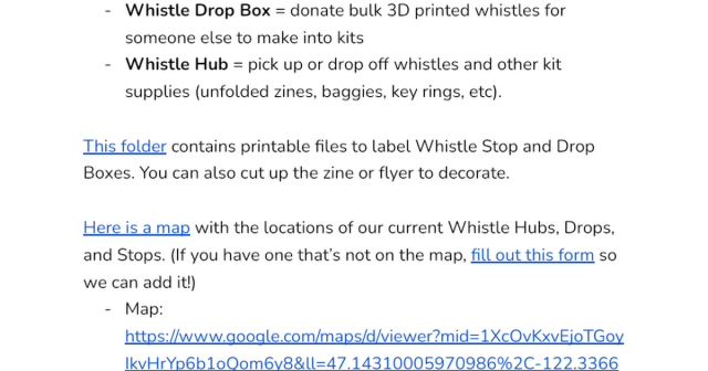 mastodon.murkworks.net/@moira/… moira@mastodon.murkworks.net - @inthehands Seattle schools are already on alert, people (including me) have been making and distributing whistle packs, they're to the point of being kits and there's a map of dropoff/pickup locations at businesses, and so on: