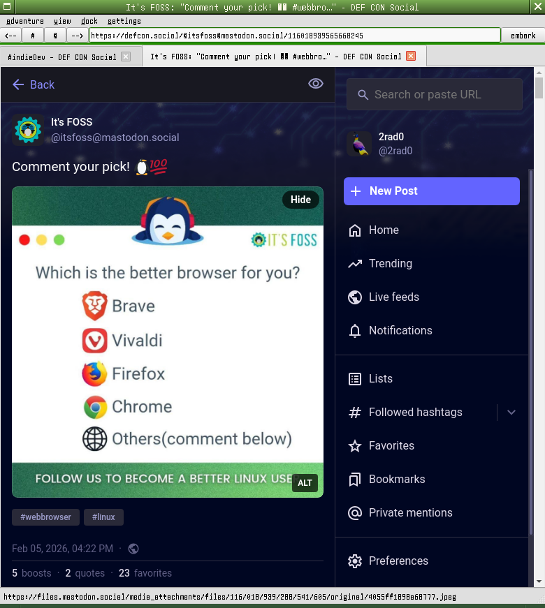 posted from tokodon while listening spotify on riff app with newsflash, podcasts and telegram open in the brackground (From pinephone with 2 GB of RAM and an SoC with the latest issue of the datasheet dated at June 2015) @pine64 @postmarketOS @phosh