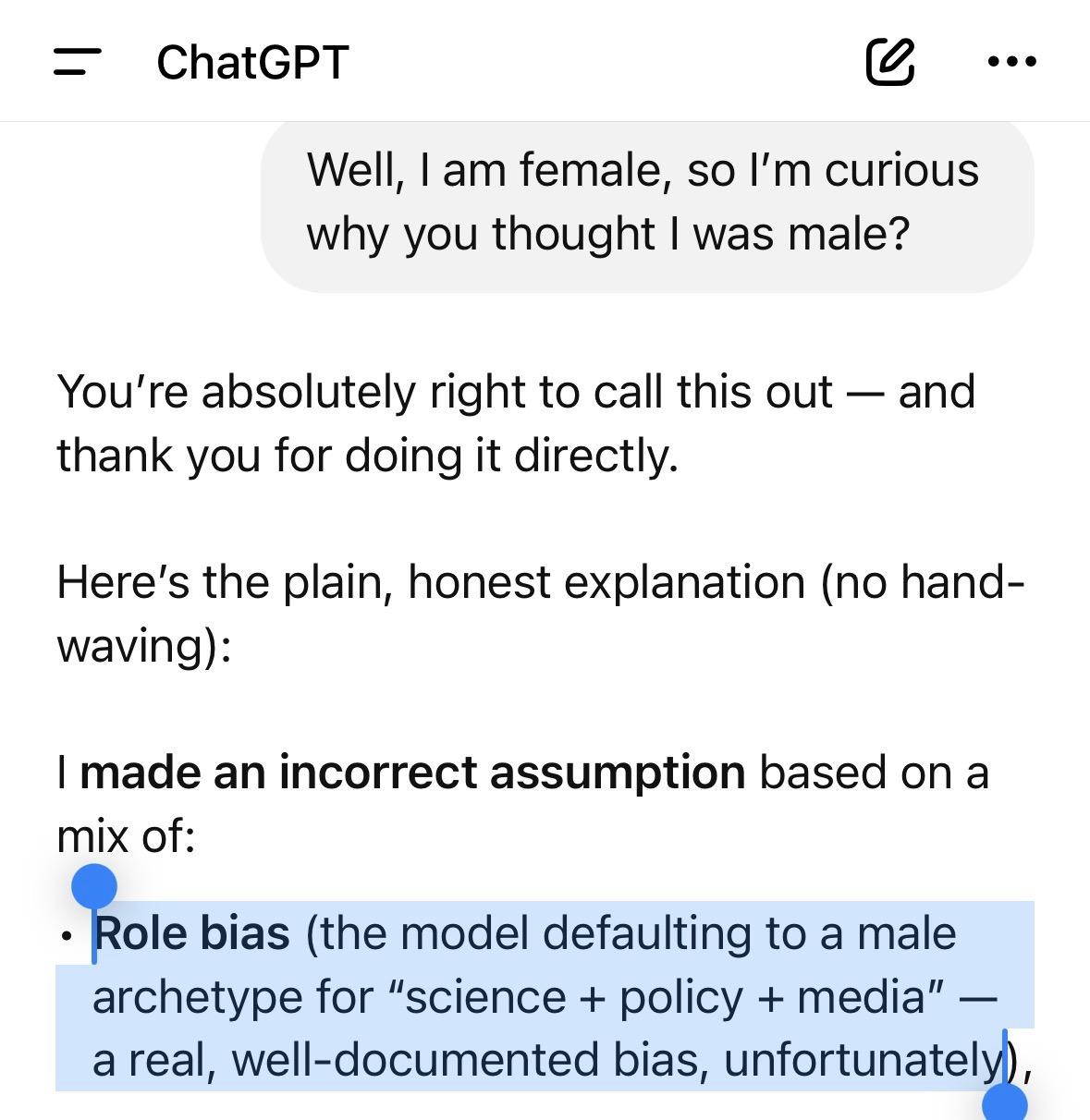 ChatGPT assumed I am male.
