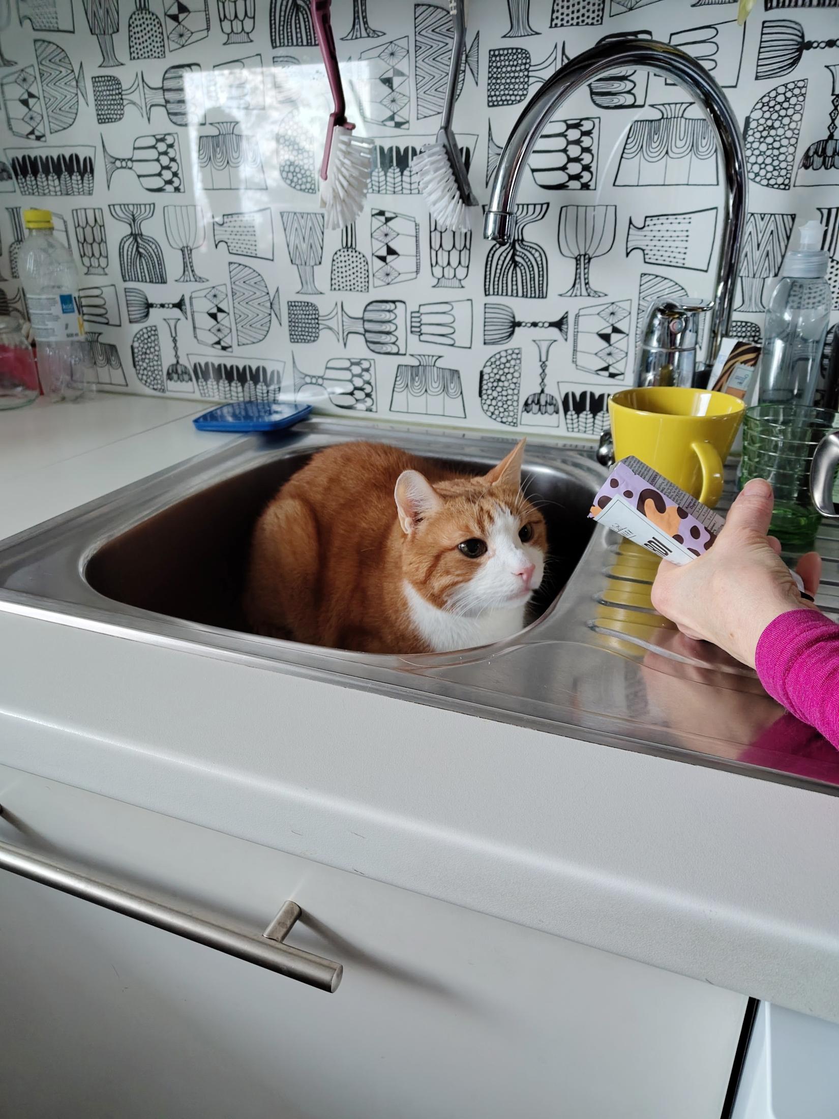 I have visited mother and also Rudolf, who for some reason thought we'd be packing him away in his carrier to take him somewhere... And then hid in the kitchen sink in protest. 😆 Not even wet food enticed him out at first!