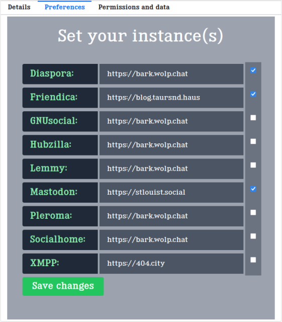 And I wanted it to look and work as closely as possible to how pressing a Facebook or X/Twitter share button works. Once someone has visited your website and told it to remember their instance they don't have to enter it again, so later when they hit the share button on your site it's as frictionless as sharing to any of the centralized social sites.